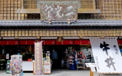伊勢神宮入口の目前に店を構えているため、たくさんの観光客の方にご利用頂いており、レトロで風情ある店構えが特徴です。